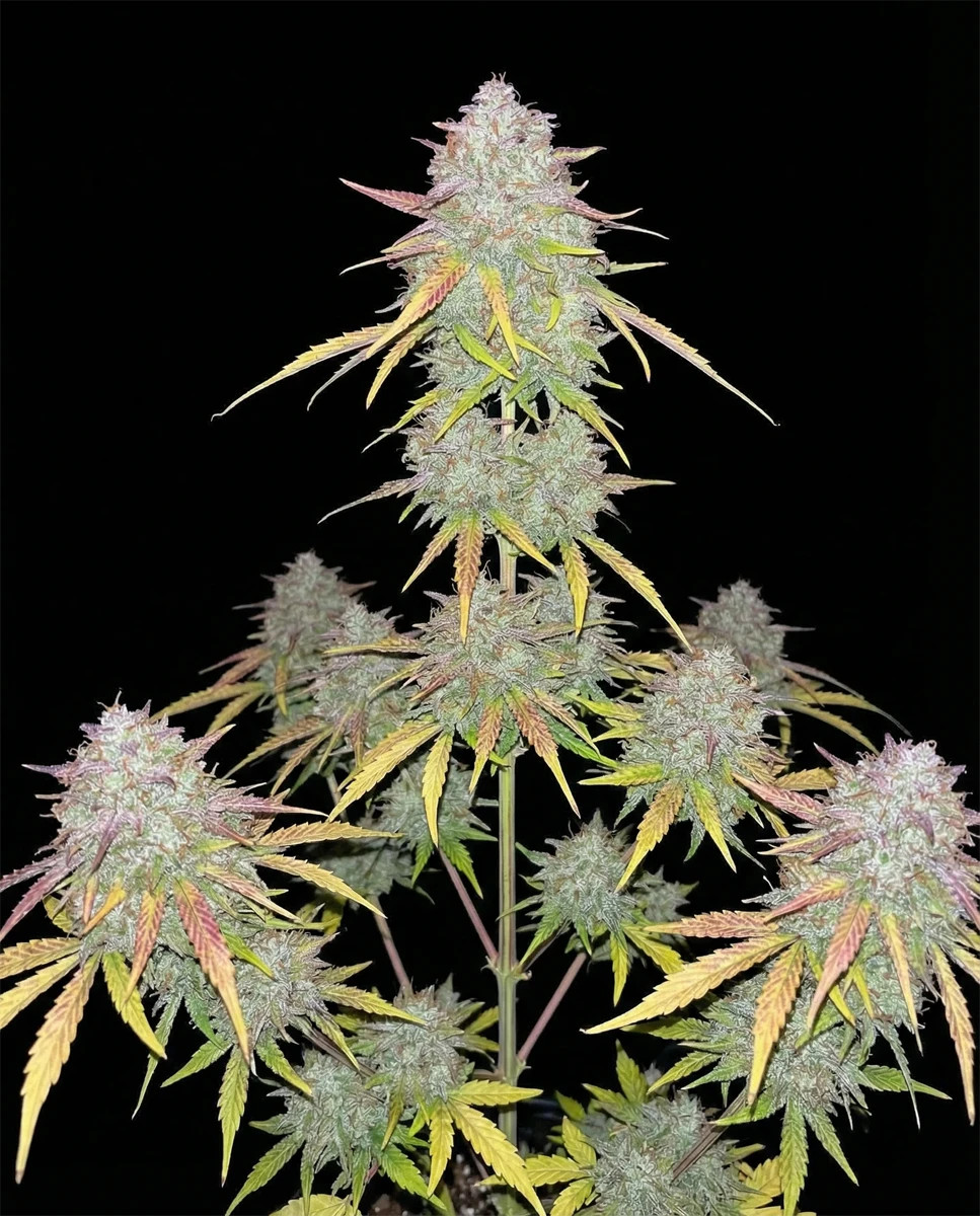 Die Pflanze erreicht 70110 cm Indoor und 80140 cm Outdoor und produziert lange, massive Colas, die mit Kristallen bedeckt sind. Die Blten knnen Farben von Grn bis hin zu Violett- und Rottnen annehmen ein Merkmal, das von der Zkittlez-Genetik geerbt wurde, deren Phnotypen fr ihr auergewhnliches Aussehen bekannt sind.